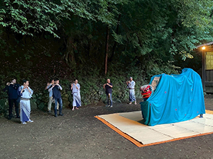 当番宅の後、お宮で一芝舞い神様を招きました。
